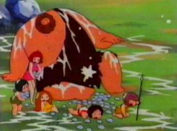 The village is rocked by a series of powerful earthquakes, not from the volcano though. A huge hot water geyser begins firing out hot water across the land. The villagers soon realise that this will mean they cannot go near for fear of being burnt. The children notice, however, that lots of animals and the cheeky squeakies are using the hot water pools surrounding the geyser. Tum Tum is placed in the shadow of a tree whilst Kum Kum and his friends play. Tum Tum has to move constantly as the shadow of the tree is moving. Suddenly the animals all depart followed soon by the Cheeky Squeakies.