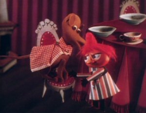 Sorry Oo eventually arrived at Too Ticky's bathing hut and scratched at the door to be let in. Too-Ticky sympathised with the dog and so let him in. The big healthy Hemulen, however, was left alone wondering why no one liked him. He really did want a dog as a friend. He went after Sorry Oo determined to find out the reason why he was not liked.