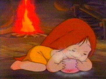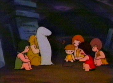 The children are racing through the forest when they come across a small fire. They hastily try to extinguish the fire before it becomes dangerous. As Kum Kum is busy putting out the fire, a small white rabbit appears. The rabbit is frightened by the fire but also by the sight of a fox that appears from the bushes. Kum Kum chases the fox away and then sets the white rabbit (named Little Bun) down in an area of fresh grass. The children then start back to the village but are being followed. They find the Little Bun is following closely and so they stop to play with him. Jumbo informs them that they cannot take the rabbit back to the village since the villagers have not seen fresh meat for a long time and Little Bun would soon be on the menu in the form of a stew. Kum Kum decides to hide Little Bun in a small cave with a wooden gate to prevent him from wandering. Kum Kum tells his father about the rabbit and so Strong Arm goes to see for himself. He comes across The Wise One who has found Little Bun dead inside the cave. A fox has broken in and killed Little Bun but was frightened off by the appearance of the Wise One. Strong Arm asks The Wise One to leave Little Bun since he was Kum Kum's pet. He puts Little Bun back in the cave for Kum Kum to find. Kum Kum and the children are devastated to find Little Bun dead. They take him up a large hill to a small tree and place his body under it. There they cover his body in leaves. Kum Kum is left alone, when there is a sudden gust of wind and the leaves are blown high up in the air. Kum Kum sees the spirit of Little Bun rising towards the moon.