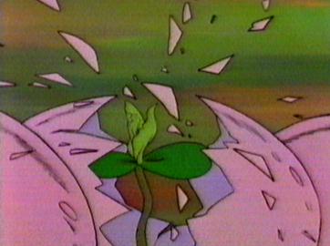 In gratitude the cheeky squeakies leave the children a shiny egg. Butterfly looks after the egg whilst Jumbo and the other boys go hunting for more eggs. Whilst away Butterfly's egg stops shining and she thinks it's dead. The boys return, however, with more shiny eggs and they too stop shining. They take all the eggs to the lake belonging to a gigantic dinosaur called Saurus. They ask the dinosaur if they me leave the eggs in the waters. The giant dinosaur refuses them entry but sprays the eggs with water. The eggs immediately start shining again and suddenly hatch open. They turn out to be large seeds and not eggs. The seeds produce large melon plants which when planted produce a huge crop of food. The Cheeky Squeakies have saved the village.