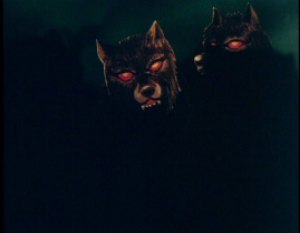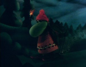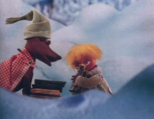 Just then, the big healthy Hemulen heard the cries of Sorry Oo. He rushed to the dog's aid and beat back the wolves with a flaming torch. Sorry Oo was shaken but safe thanks to the Hemulen. Sorry Oo realised that he had made a another mistake, the Hemulen was a real friend. The wolves left the valley. The two friends walked back to the Moominvalley house and were met by Moomintroll. Moomintroll's opinion of the Hemulen now changed as he realised what a brave creature he really was. They all now went back to the Moomin house where it was warm and safe.