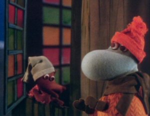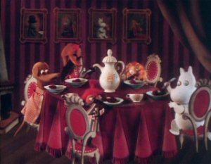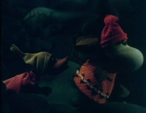 Winter was being slowly edged out by Spring but it was still very cold. Sorry Oo was still at the bathing hut with Too-Ticky. The invisible mice were playing music for them and everyone was enjoying it. That soon changed when the Hemulen arrived at the door and asked why Sorry Oo did not want to be his friend. Sorry Oo told the Hemulen that he did not want to go out in the snow and Too-Ticky said he could stay in the bathing hut. The Hemulen left and not long after Sorry Oo went outside determined to find his brothers the wolves. That night the wolves actually arrived and Sorry Oo realised that he had made a terrible mistake. The wolves were not his brothers and they were not friendly. Sorry Oo now started to howl in fear as the wolves were vicious. He feared for his life as the wolves attacked.