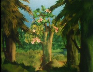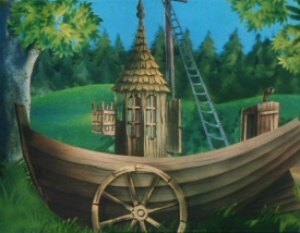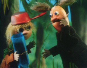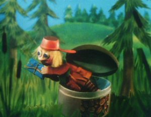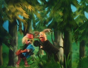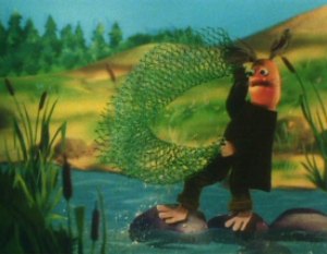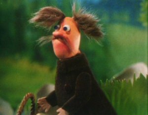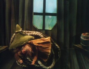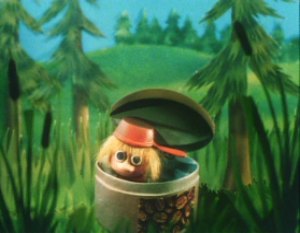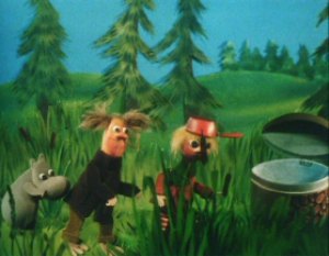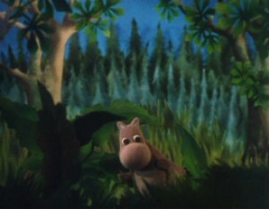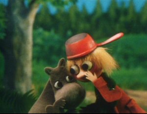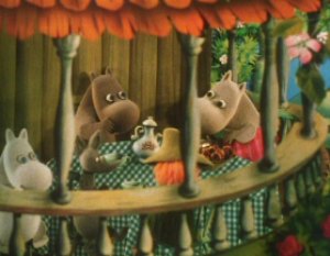 The Muddler was trying to get his things in order, buttons, zips, pins and special buttons were all over the place. The Muddler was a very fussy character but Moominpappa was too busy watching some squirrels as he had never seen one before. Hodgkins and Muddler found this very funny to watch the young Moomin. Moominpappa and Muddler wanted to know where they were going on their walk. Hodgkins explained that they were going to find his houseboat. Moominpappa was overjoyed when he saw it as he realised what a clever man Hodgkins really was. His dream of a life of adventure was coming true.