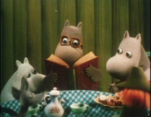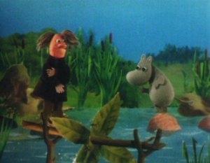 Hodgkins showed Moominpappa how to make the special water wheels and then had some food with him. Hodgkins was very much the scientist and Moominpappa had found his first true friend.