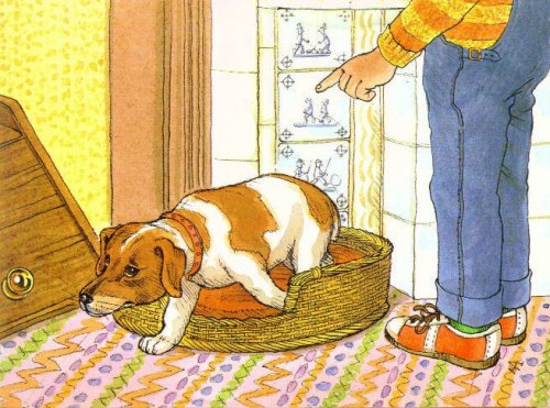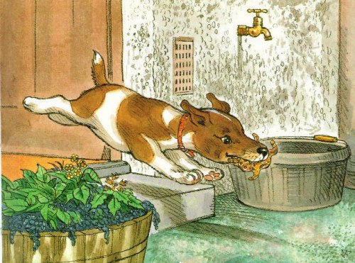 Tom scolds Tess and goes off to retrieve the toy frog.