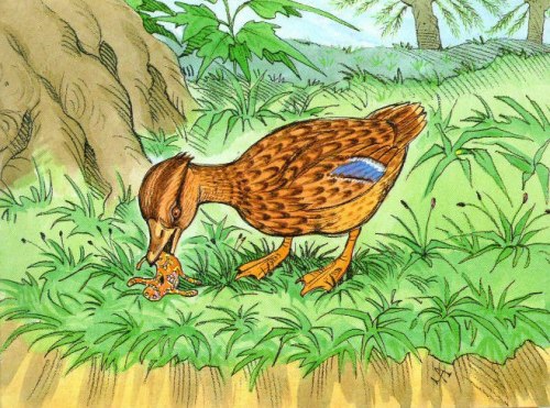 Another duck inspects the frog and finds that the stuffing is made of rice. Thankfully the duck soon leaves but Pinny and Victor are left outside.