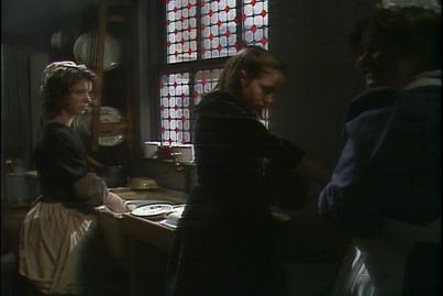 Lottie cannot believe that Sara is now poor but Sara tells her that at least she has a room and is inside as opposed to begging. Miss Minchin informs Sara that she must carry out her chores throughout the day and then later on in the evening she may take books and concentrate on her studies. She must then report to cook in the kitchens who delights in the news that Sara is now working class. Cook gets Sara to scrub the floors and it will spoil her pretty little hands.