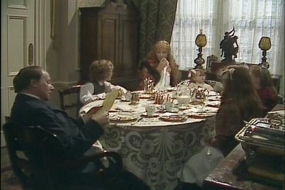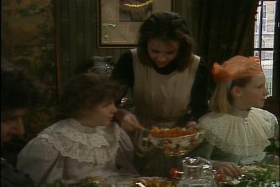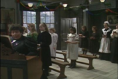 Beck has seen a four armed statue. She describes it to Sara who recognises it as Kali. Becky is worried about someone moving in next door who worships an idol. Later the household are singing Christmas carols with the school children who cannot go home. In the Carmichael home the children are opening their presents.