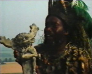 and start singing. Mr. Alabaster appears in full tribal dress walking up the